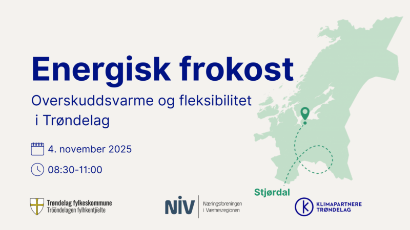 Norsk Energi og Asplan Viak har, på oppdrag fra fylkeskommunen, kartlagt hvor det finnes tilgjengelige varmeressurser og hvilket potensial for energifleksibilitet som ligger hos trønderske nærings- og industribedrifter. På frokostmøtet får du en presentasjon av resultatene og hvordan de skal følges opp videre.