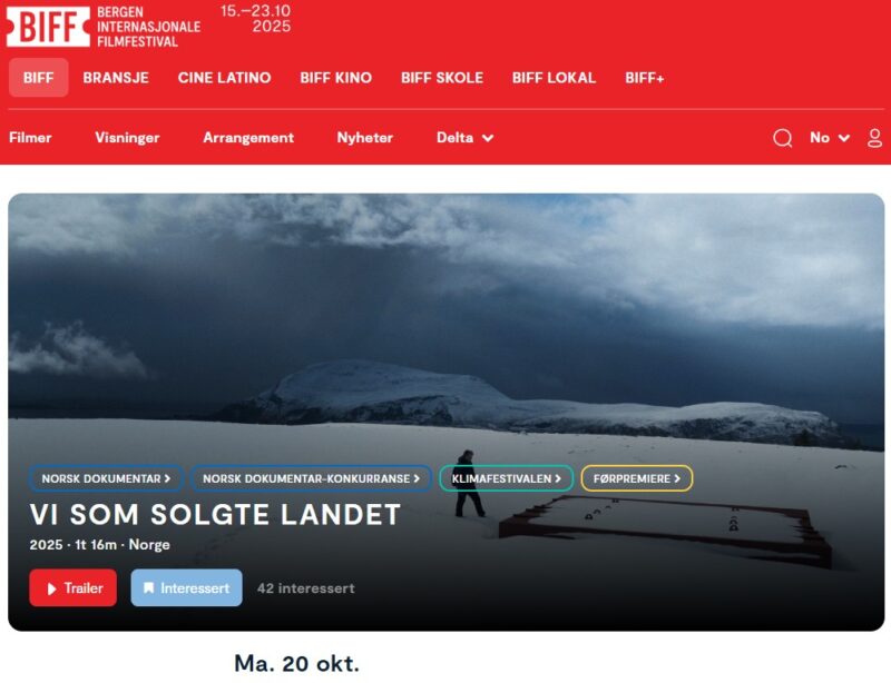 I samarbeid med vår partner BIFF (Bergen internasjonale filmfestival) inviterer Klimapartnere Vestland til visning av en helt ny klima/natur-dokumentar og etter-film samtale.