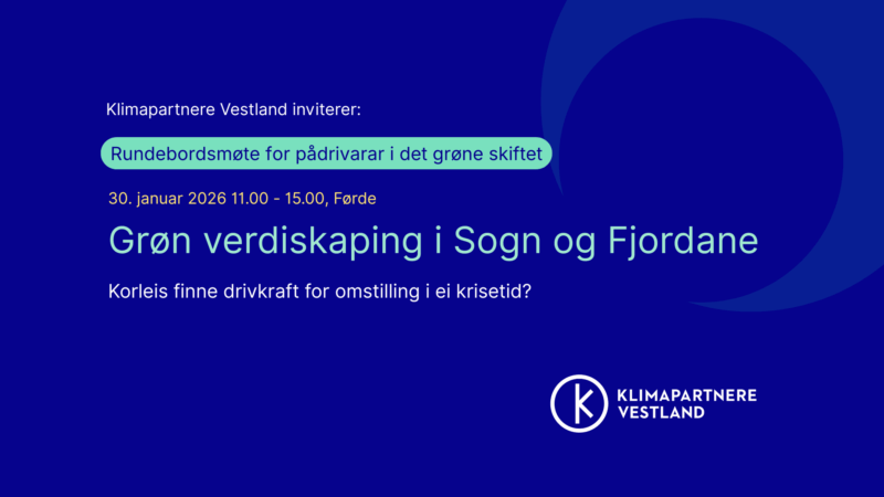 Klimapartnere Vestland inviterer partnarar og pådrivarar i næringslivet til inspirasjon og samtale om grøn verdiskaping i Sogn og Fjordane