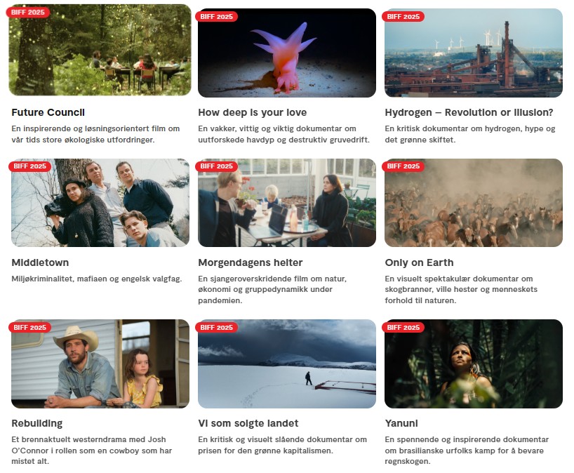 I årets festival (2025) vart tretten filmar vist under Klimafestivalen på BIFF