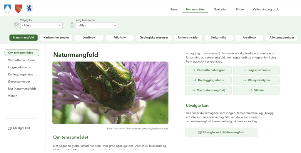 Et nytt digitalt arealregnskapsverktøy utviklet av Akershus, Buskerud og Østfold fylkeskommuner skal gi kommuner, politikere og innbyggere et langt bedre grunnlag for å ta beslutninger om arealbruk. Verktøyet samler oppdatert informasjon om naturverdier, arealbruk og planlagt utbygging, og tilgjengeliggjør dette i sammenstilling av kart og statistikk.