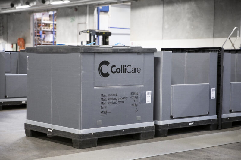 I samarbeid med transportselskapet ColliCare Logistics har Solar testet ut gjenbrukbare plastkontainere som erstatter pappkasser, europaller og pallekarmer. De robuste kontainerne gir bedre beskyttelse av varer, mindre luft i transportene og færre omlastninger. Resultatet er både reduserte utslipp, lavere ressursforbruk og mer effektiv drift.