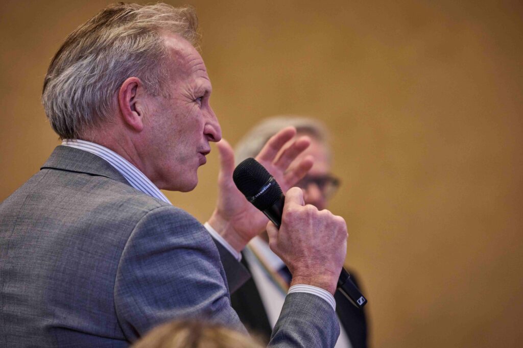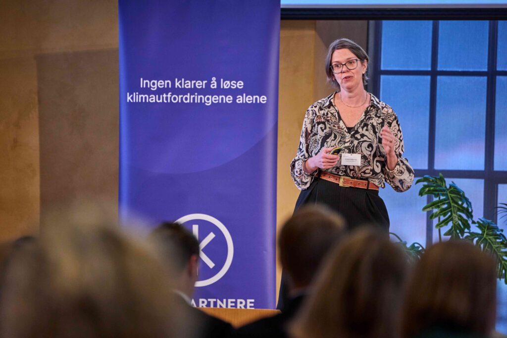 I en tid hvor krisene avløser hverandre, vet vi at det kan være krevende for en leder å holde oppe engasjementet i klimasaken, sier Renate Nedregård, leder i Klimapartnere Vestland. Da er det viktigere enn noensinne å møtes på denne måten som vi gjør på toppledermøtet, støtte hverandre og inspirere til fortsatt handling.